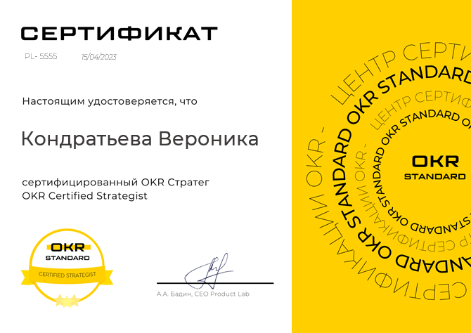 Благодаря тренингу OKR Certified Strategist ваша команда сможет приступить к внедрению OKR и сделать корпоративную культуру более гибкой, а также получит сертификат подтверждающий практические навыки сотрудников в применении OKR!