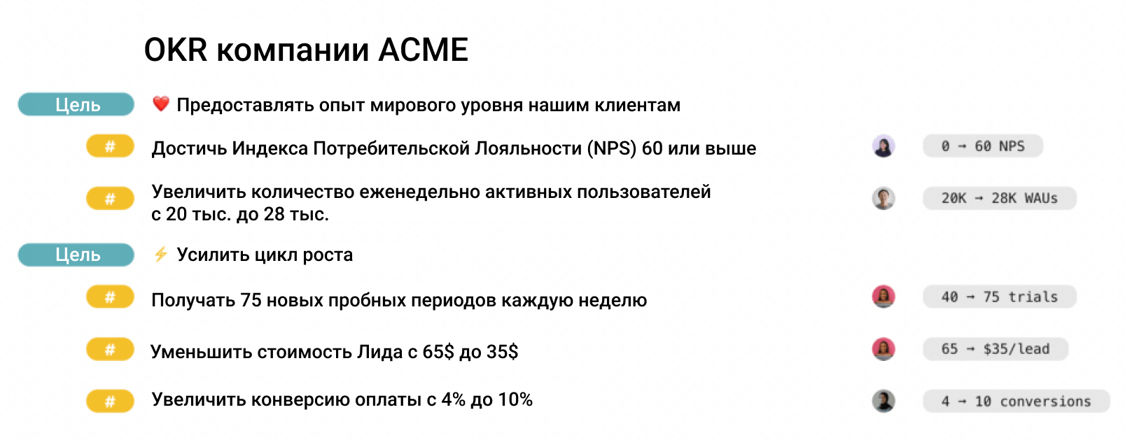 Вот несколько из проблем, которые мы хотим решить с помощью подхода OKR в Потоке.Не оптимально выстроен процесс работы с OKR