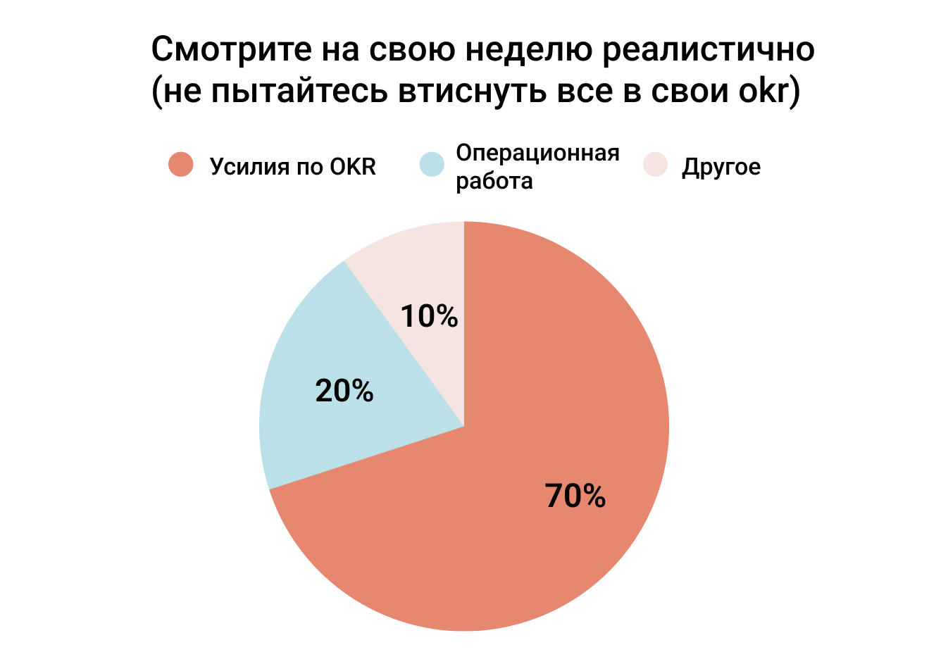 ✓ Мы сначала обсуждаем outcomes, а затем outputs во время еженедельного обзора прогресса.