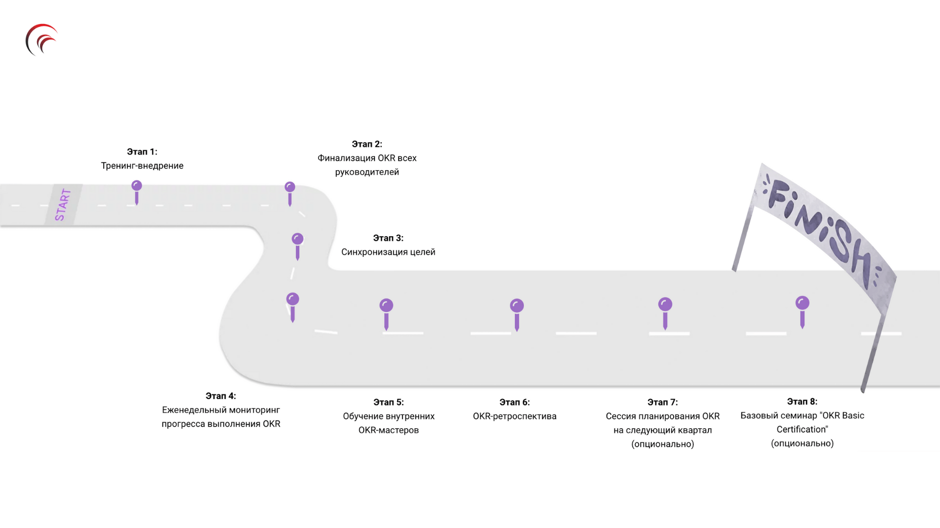 - Появятся OKR-мастера, которые будут обеспечивать непрерывную работу OKR-процесса и сопровождать участников по вопросам OKR